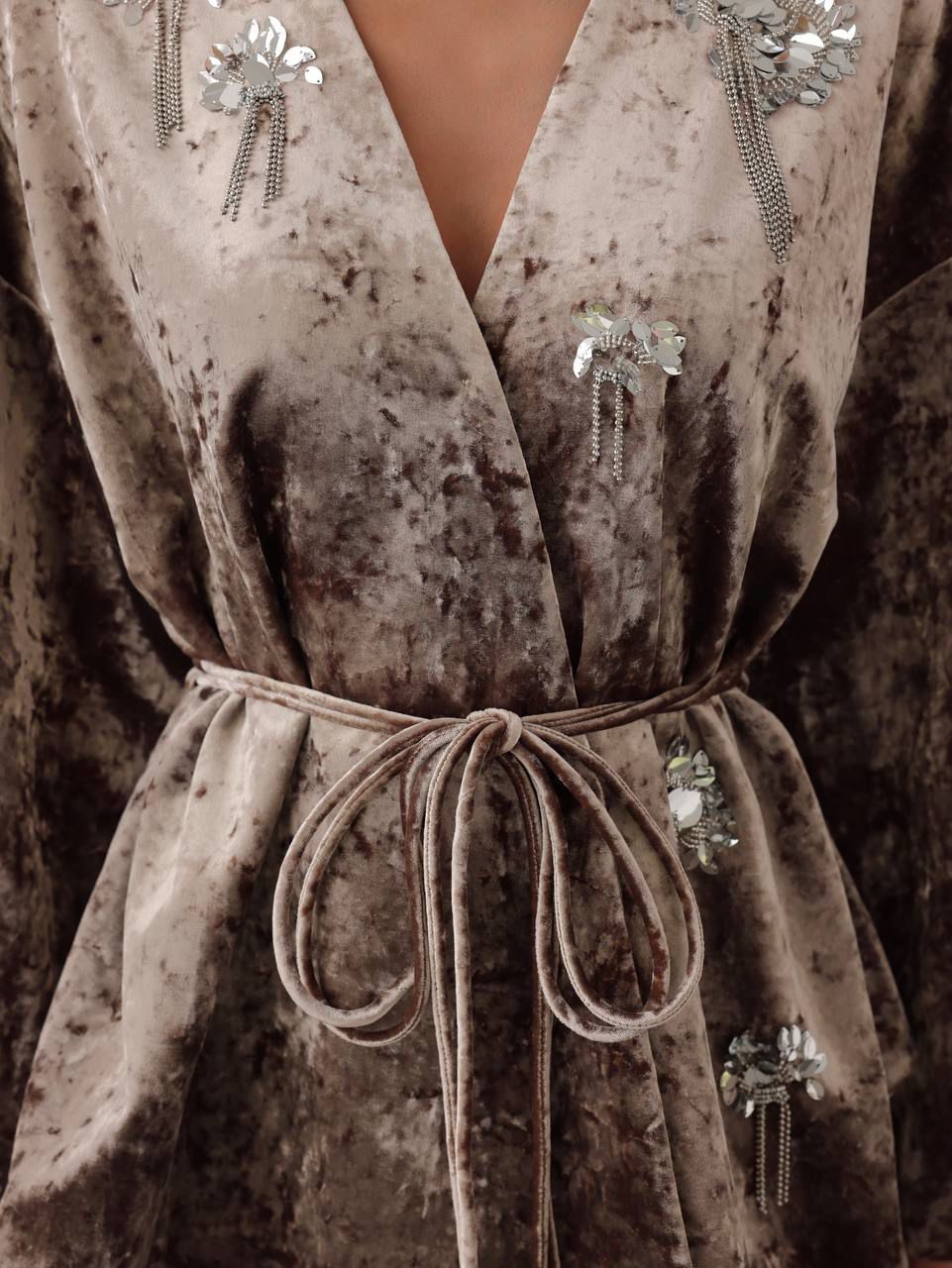 كيمونو مخملي مزخرف